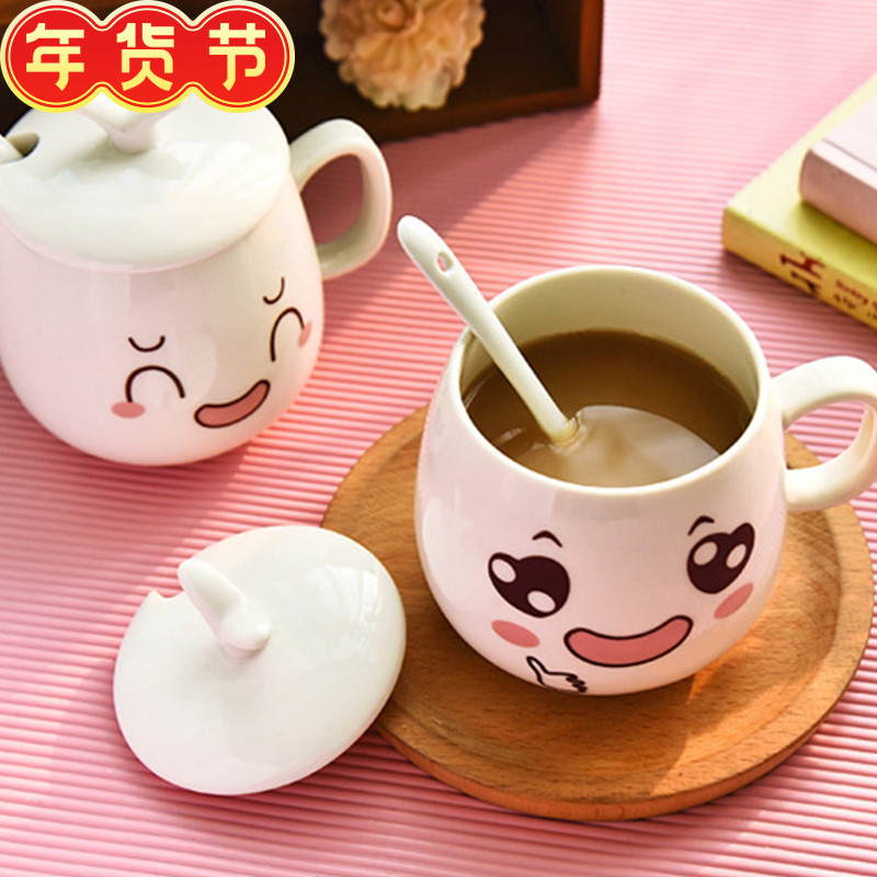 新款可怜无聊感动时尚水杯创意陶瓷带盖勺萌版卡通表情马克杯320l热门设计联盟服务商