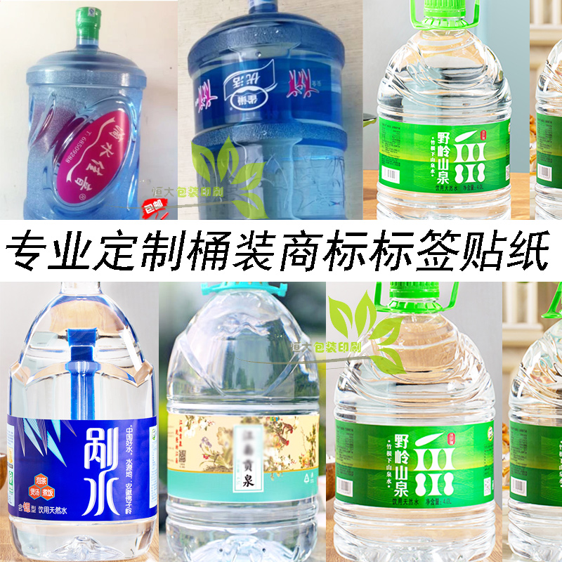 专业定制桶装水标签贴纸不干胶设计印刷矿泉水纯净水商标logo瓶贴热门设计联盟服务商