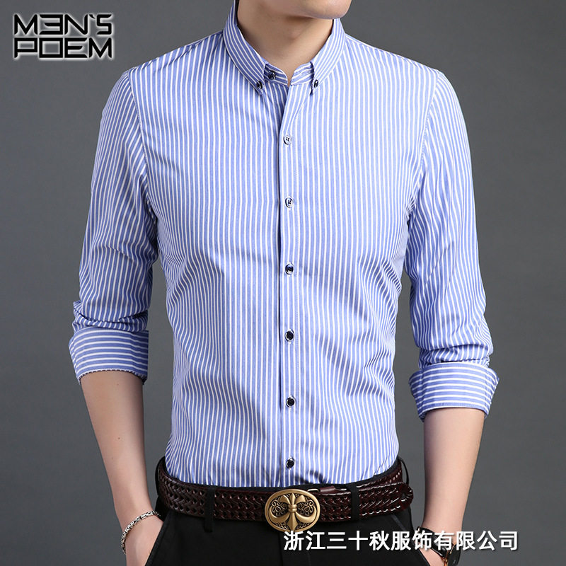 衬衫春秋季新款中青年男士长袖商务正装蓝色条纹衬衣男货热门设计联盟服务商